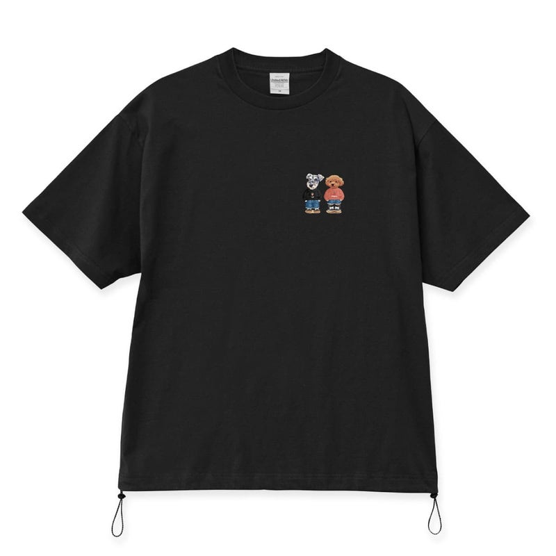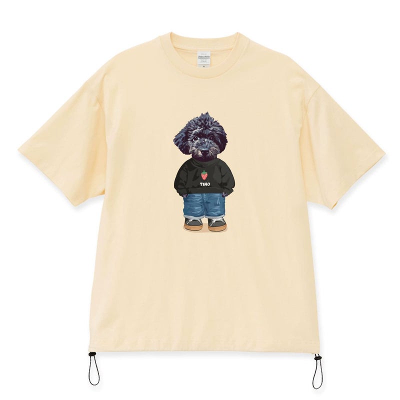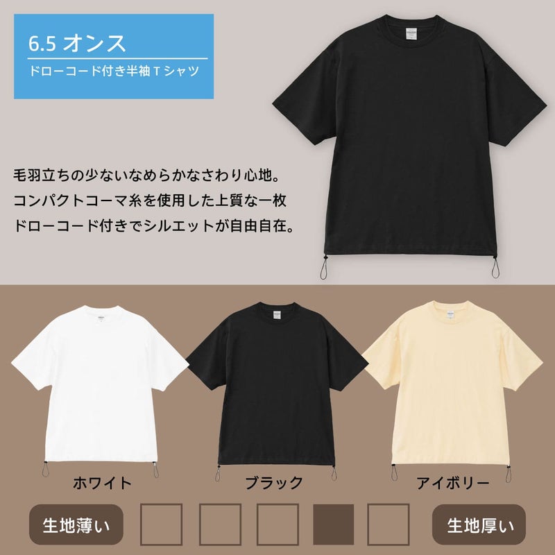 左右の裾口にドローコードを配したTシャツ。