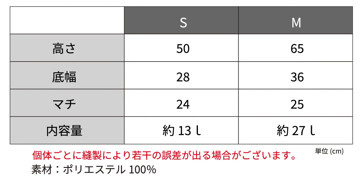 ・Mサイズ:スーパーの買い物かごの容量を想定したサイズ感。