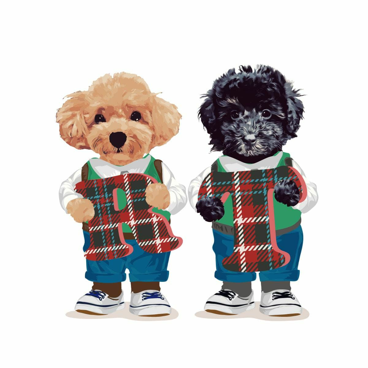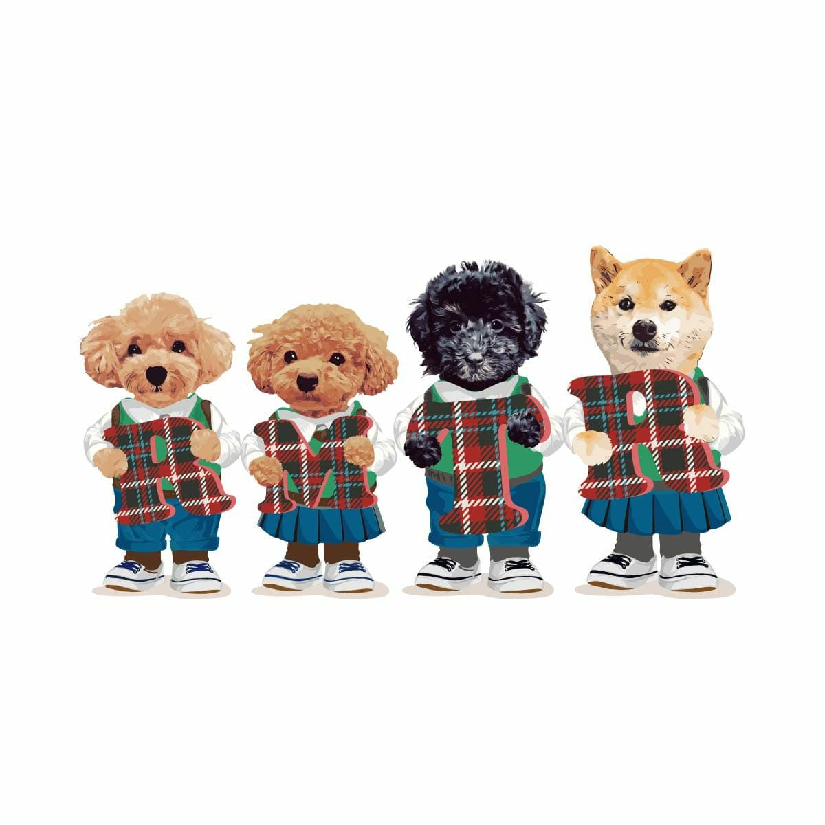 3頭/4頭デザインは配置順とイラスト番号(ズボンかスカート)の組み合わせをお伺いします。