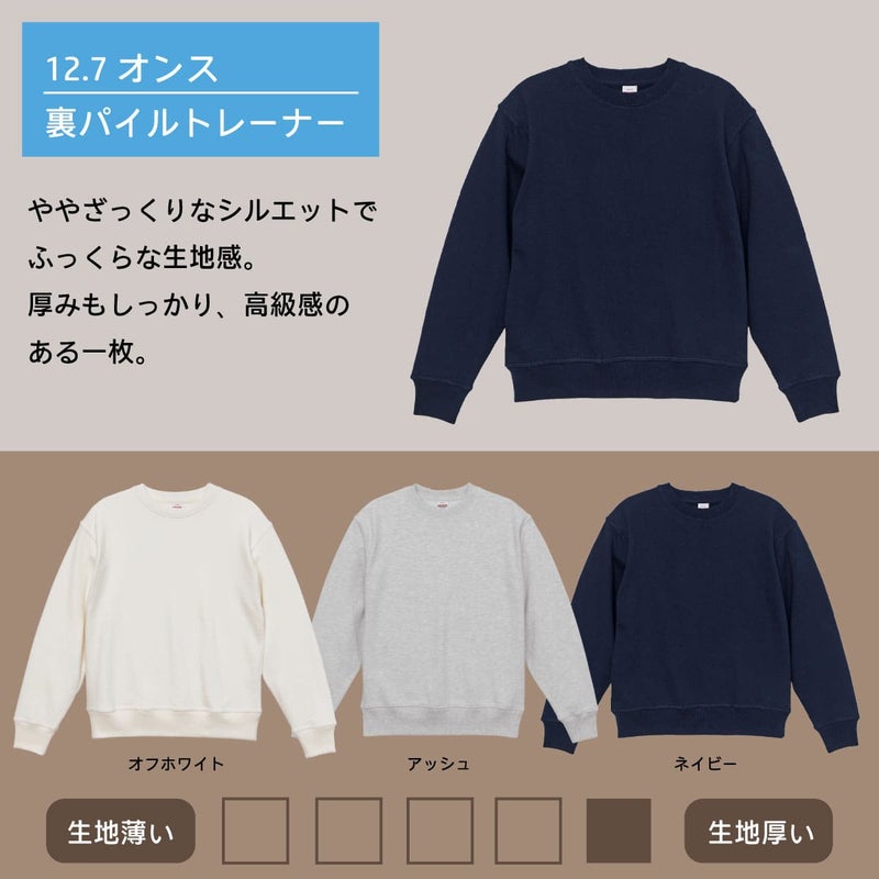 ゆるっと着こなしパステルの道を軽やかに♪ 12.7オンス裏パイルトレーナー | デニムでステップ編 | 1~3頭デザイン