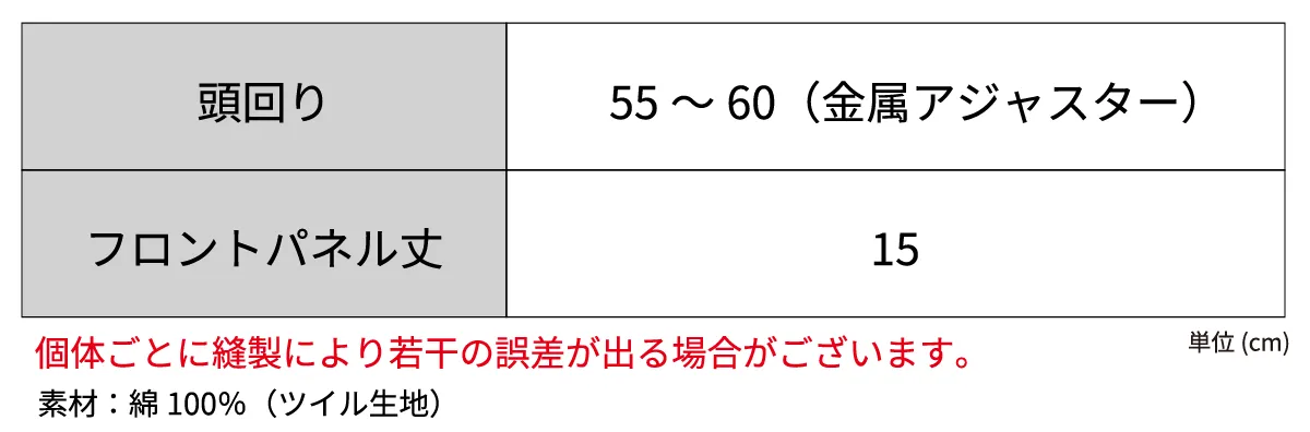 素材: 綿 100% ツイル サイズ:フリー(55~60cm)