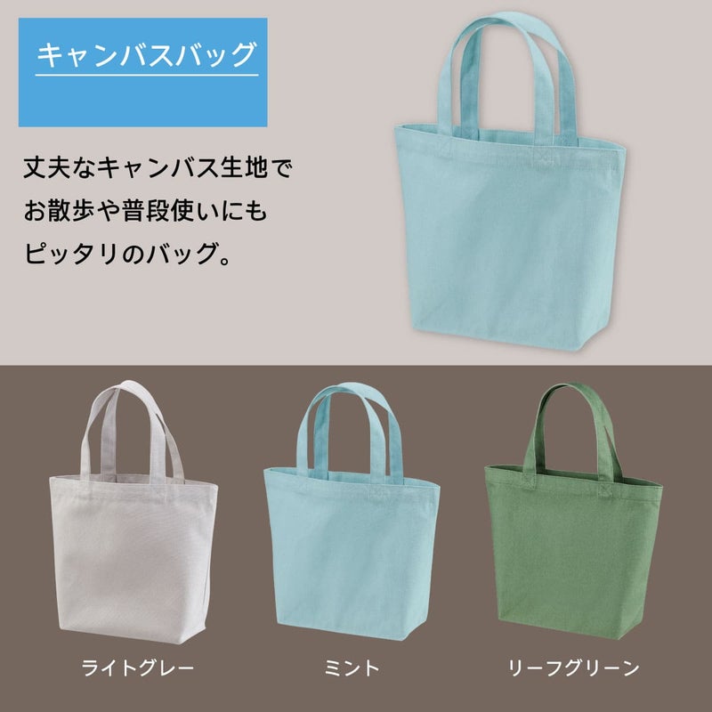 丈夫なキャンバス生地でお散歩や普段使いにもピッタリのバッグ。