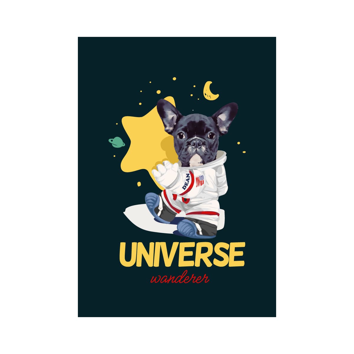 大きな星を抱えた宇宙服を着たペットちゃん。