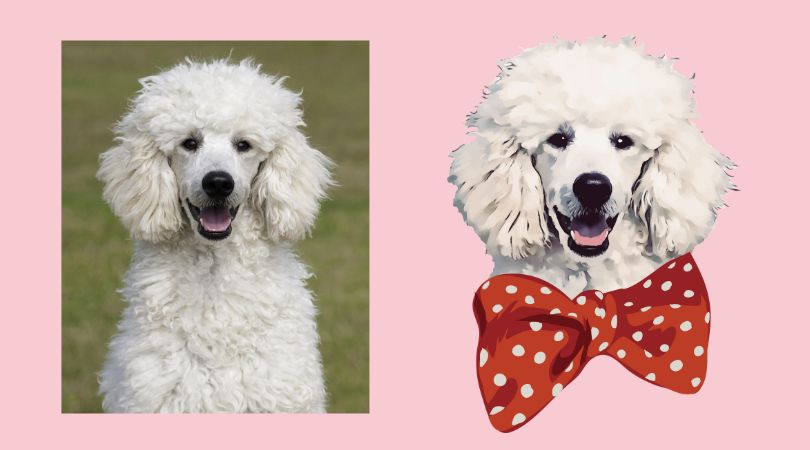 - イラスト映えするように実際の毛色と比べて彩度が上がった仕上がりにしております。そのため白い子はクリーム色寄りの仕上がりとなる場合がございます。