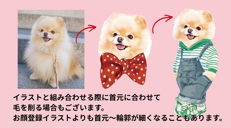 当ショップの「お顔登録」は、お送りいただいたお写真をもとに、デジタルでイラスト化するサービスです。ペットちゃん毎に登録が必要です。