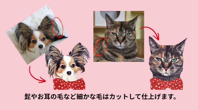 - 手描き(似顔絵)ではございませんのでお写真のままの表情の仕上がりとなります。